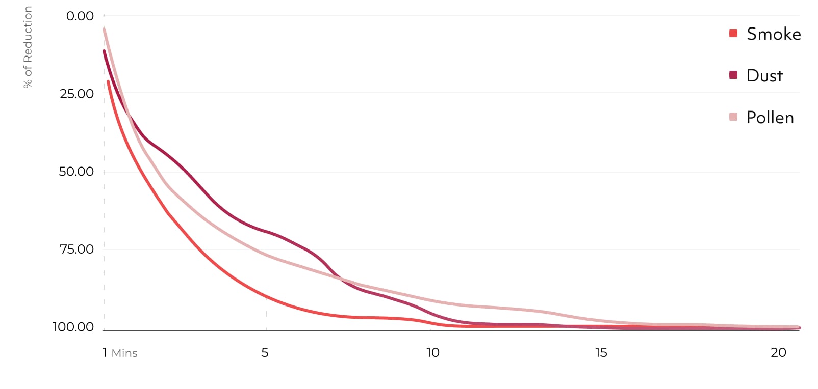 Trotz seiner kompakten Abmessungen ist der Aair Lite effizienter als die meisten größeren Luftreiniger. Seine CADR (Clean Air Delivery Rate) liegt bei 299 m³ / Stunde. Damit kann die gesamte Luft in einem 30m² großen Raum mit einer Raumhöhe von 2,5m viermal pro Stunde komplett umgewälzt und gereinigt werden.